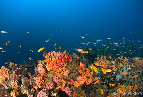 Located 45 km off the coast, the Battery Barge may be small compared to other shipwrecks in Sri Lanka, but it serves as a vibrant sanctuary for marine life. This seemingly modest wreck has transformed a barren stretch of sand into a thriving underwater oasis. Adorned with a stunning array of sea fans and soft corals, the barge is a visual delight, with saw tooth feather stars clinging to its structure and a school of snappers gracefully swimming over the broken hull. Inside the steel remnants, lionfish float serenely, while hundreds of cardinalfish form a shimmering haze around a healthy growth of black coral. In the vastness of the ocean, the Battery Barge stands as a cradle of life, offering divers a breathtaking glimpse into a vibrant and dynamic underwater world.