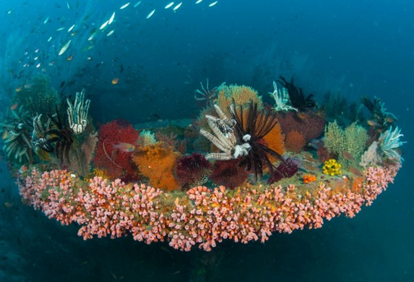 Resting at 32 meters, the Toilet Barge unveils a stunning display of beauty in the dark depths of the ocean floor. This steamship, which sank in 1983, has evolved into one of the most remarkable artificial reefs in the area. Although small, measuring about 10 meters in length, it has become a vibrant oasis for marine life and lush corals. Adorned with clusters of small corals, the wreck hosts a rich array of sea creatures, creating a scene reminiscent of a boat with wings. Positioned on the ocean bed facing west, the ship’s single-boiler steam engine and remnants of a toilet near the boiler are still discernible, lending it the whimsical name “The Toilet Barge.” Despite the ravages of time, the intricate details of this vessel continue to captivate divers, blending history with marine splendor.