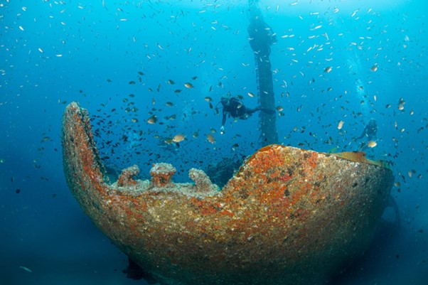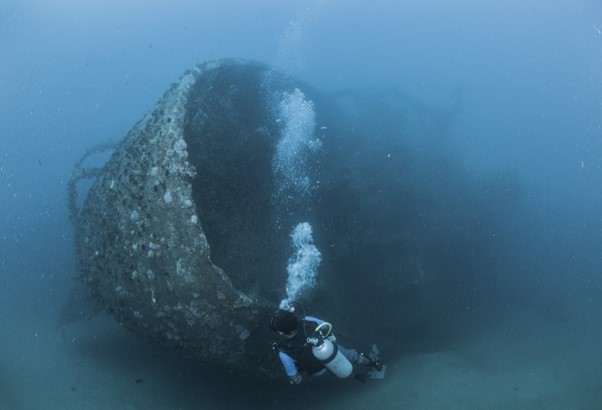 The SS Perseus, a British armed merchant vessel, played a vital role during World War I, transporting troops, supplies, and goods while being equipped to defend against enemy attacks. However, its journey was tragically cut short on February 20th, 1917, when it struck a Hertz Horn Sea Mine laid by the German raider SMS Wolf. Now resting over 40 meters deep, the SS Perseus wreck offers a compelling dive experience, requiring advanced diving skills and preparation. As divers descend, they are met by the haunting silhouette of the ship, surrounded by thriving marine life and corals. Exploring the wreck reveals the impact of the explosion and the passage of time, with artifacts offering a tangible link to the ship’s operational days and the broader naval history of World War I.